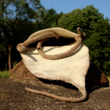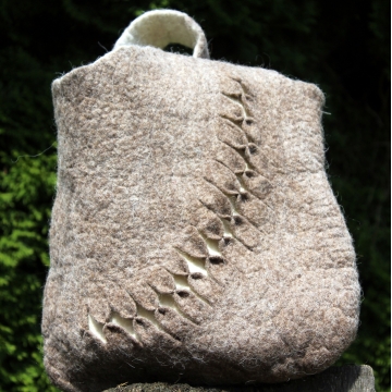 Lehká a měkká taška zhotovená technikou mokrého plstění ovčího rouna merino.
