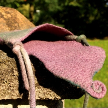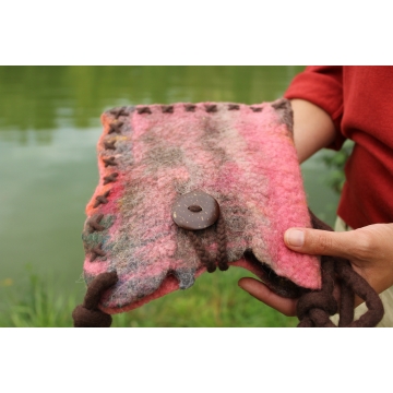 Ľahká a mäkká kabelka zhotovená technikou mokrého plstenia z ovčieho rúna merino.