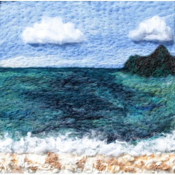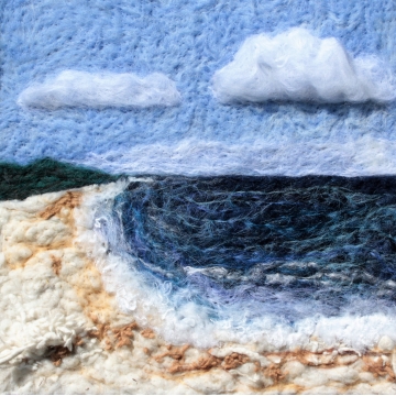 Asambláž vytvořená technikou suchého plstění ovčího rouna.