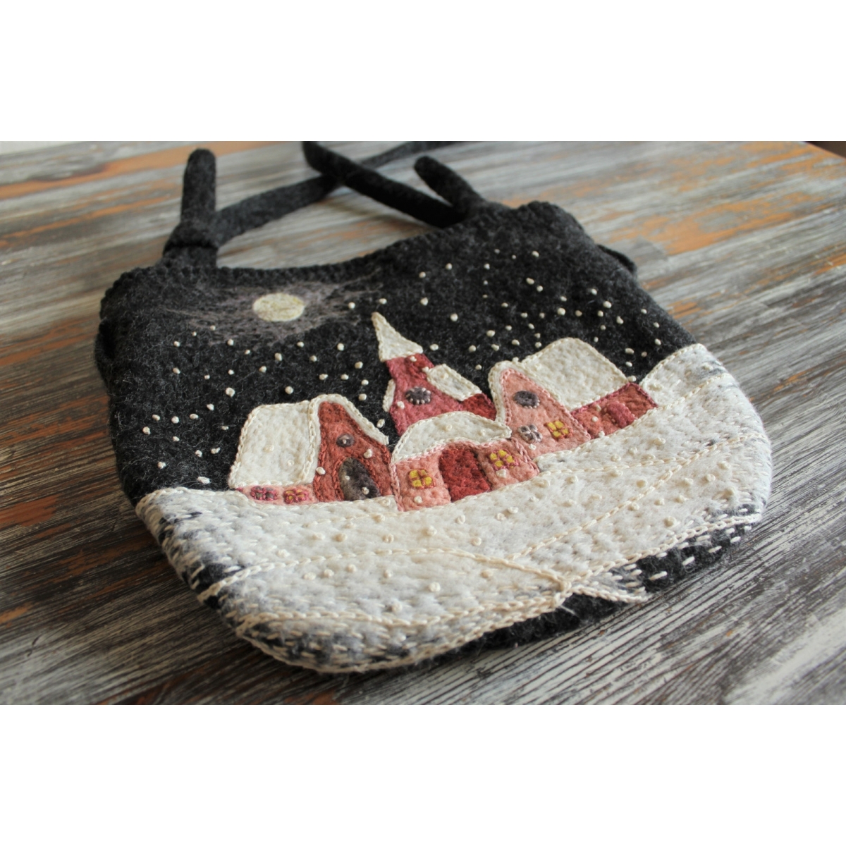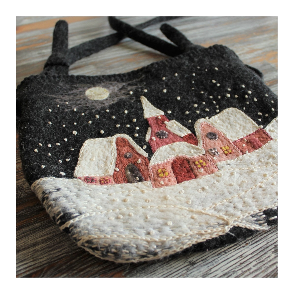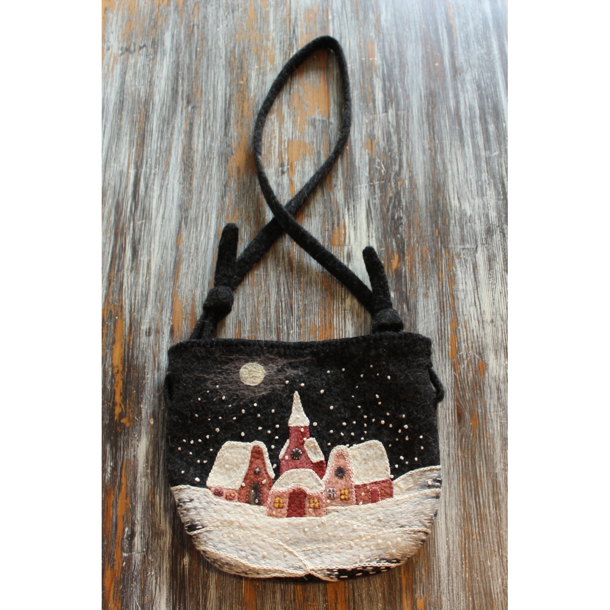 Lehká a měkká kabelka zhotovená technikou mokrého plstění ovčího rouna merino. Vhodná pro lehčí zátěž.