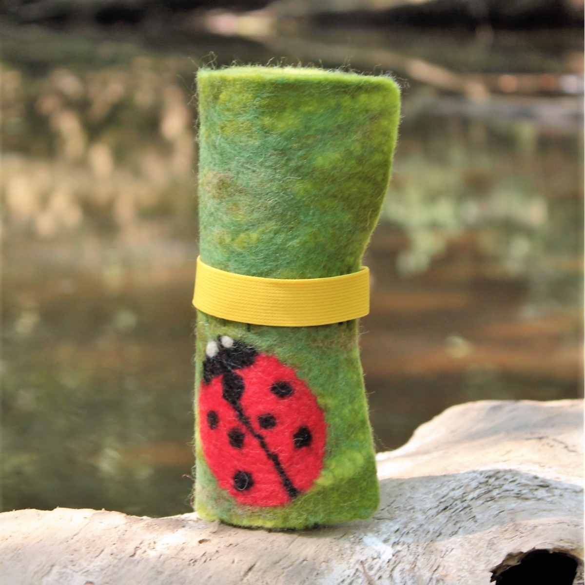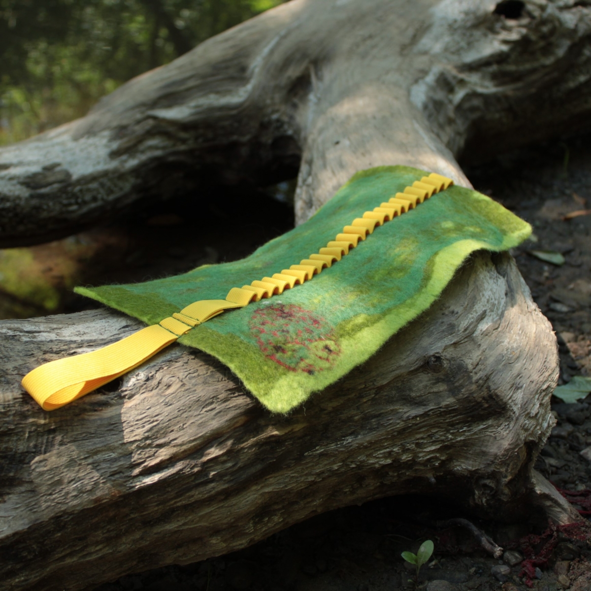 Pouzdro bylo zhotoveno technikou mokrého plstění ovčího rouna.