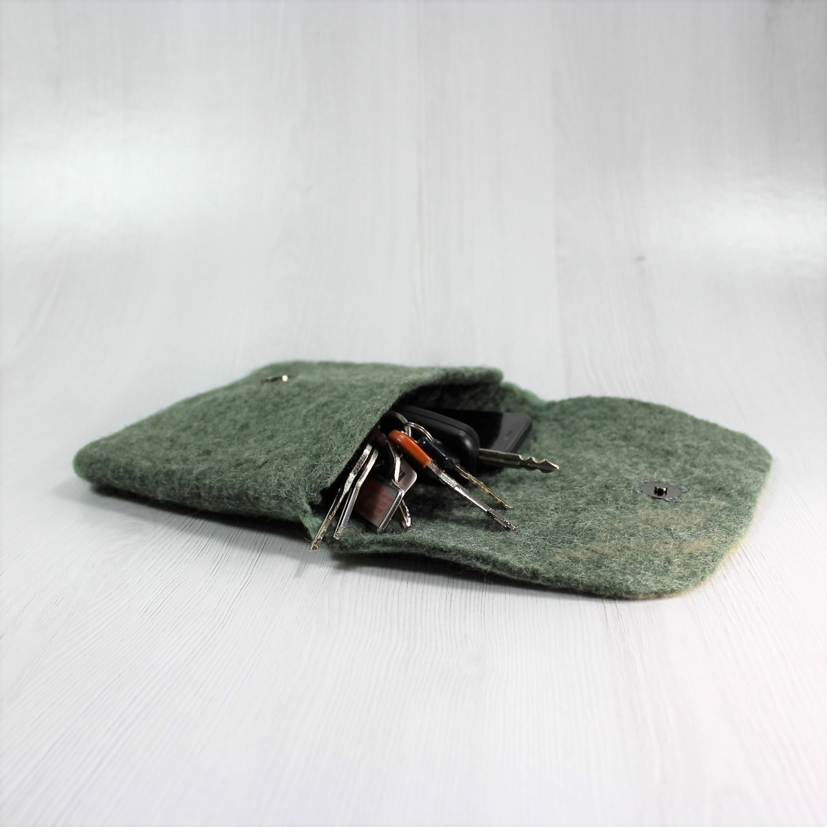 Pouzdro bylo zhotoveno technikou mokrého plstění ovčího rouna.