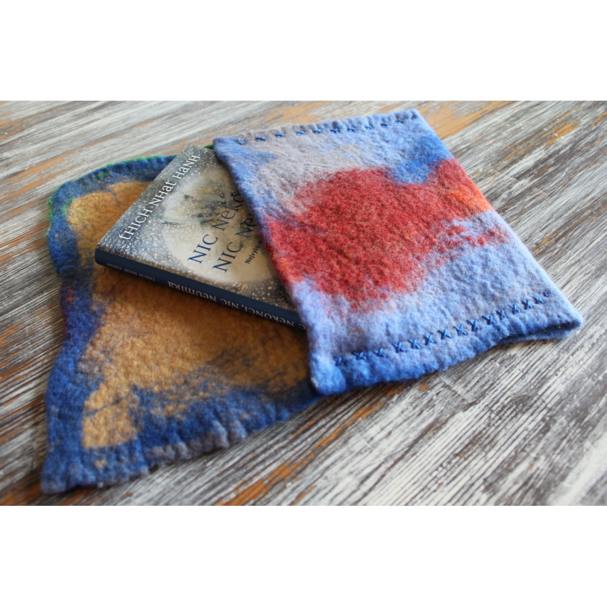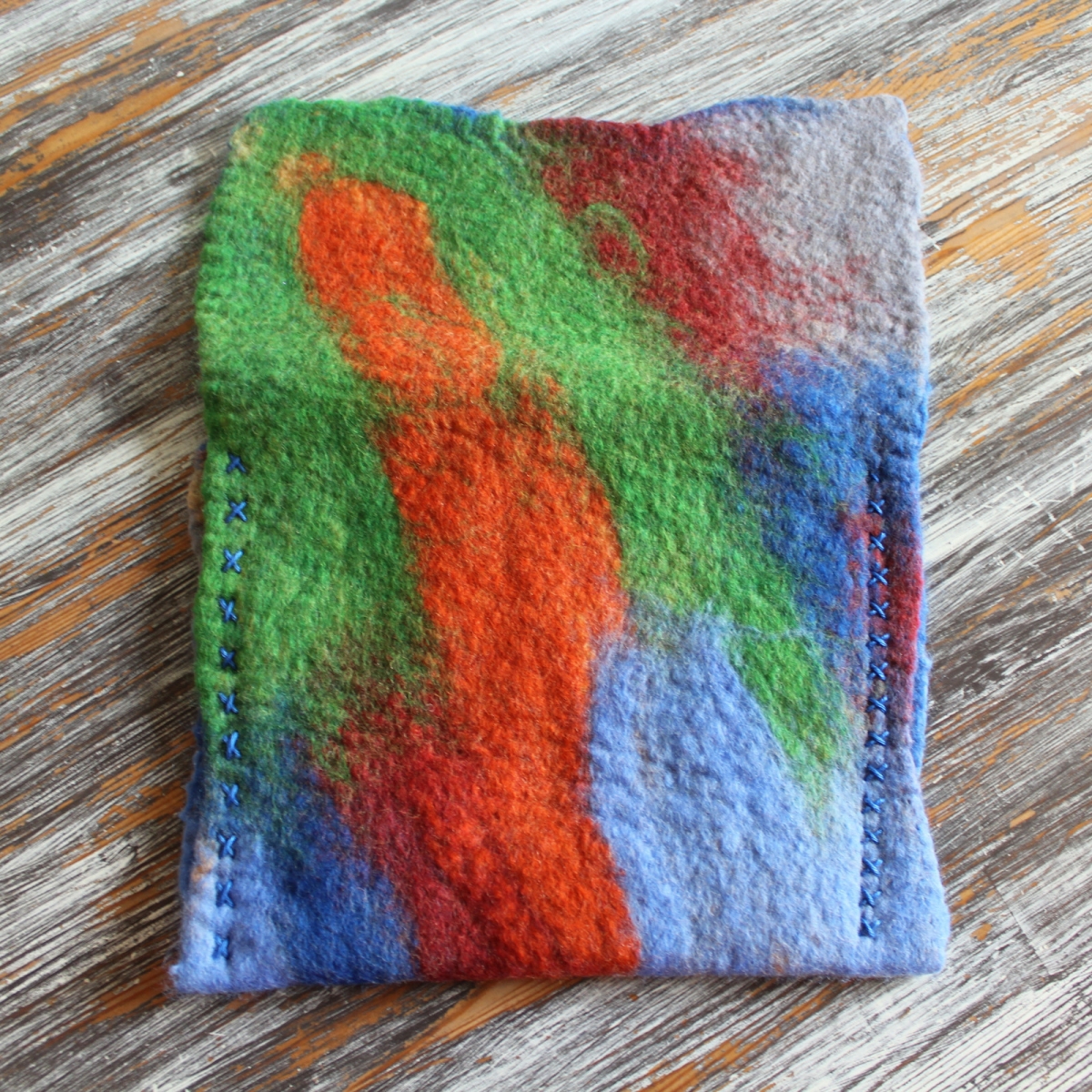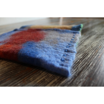 Lehký a měkký obal na tablet nebo knihy zhotovený technikou mokrého plstění ovčího rouna merino. Možné nosit jako psaníčko.