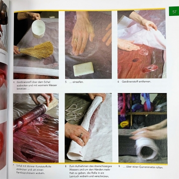 V knize naleznete kombinace jemných látek a silných plstí, design prostorových struktur i zaplsťování zvláštních materiálů.