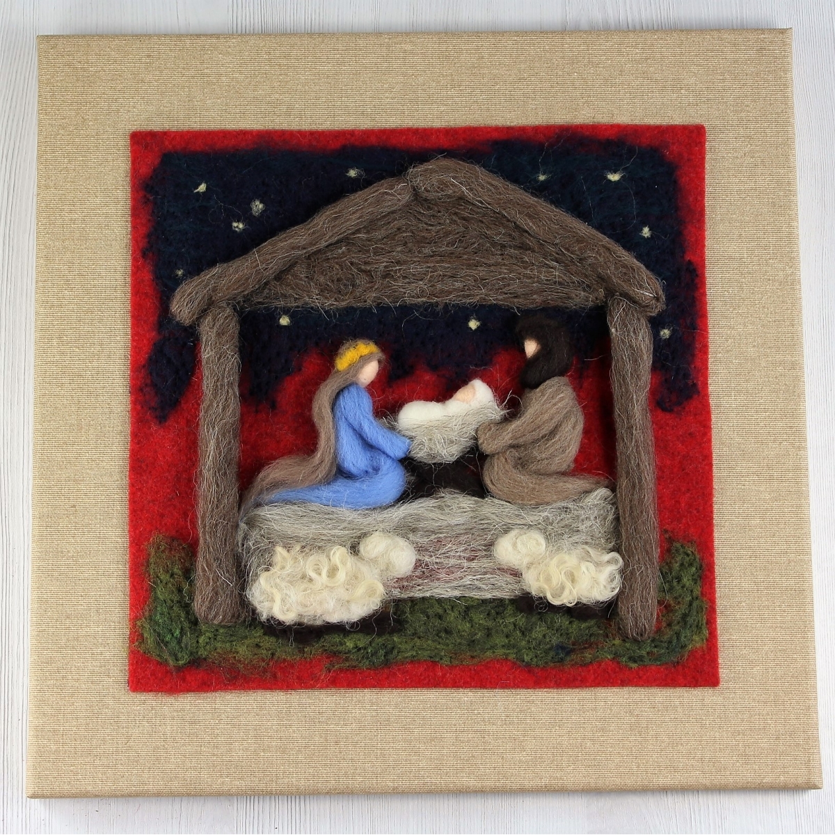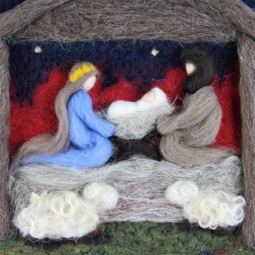 Asambláž vytvořená technikou suchého plstění ovčího rouna.