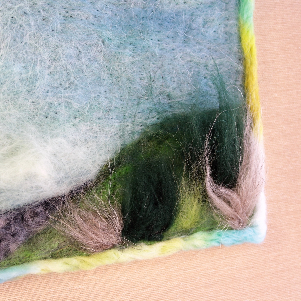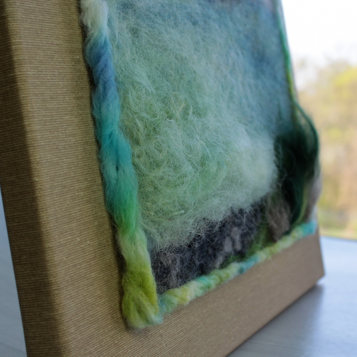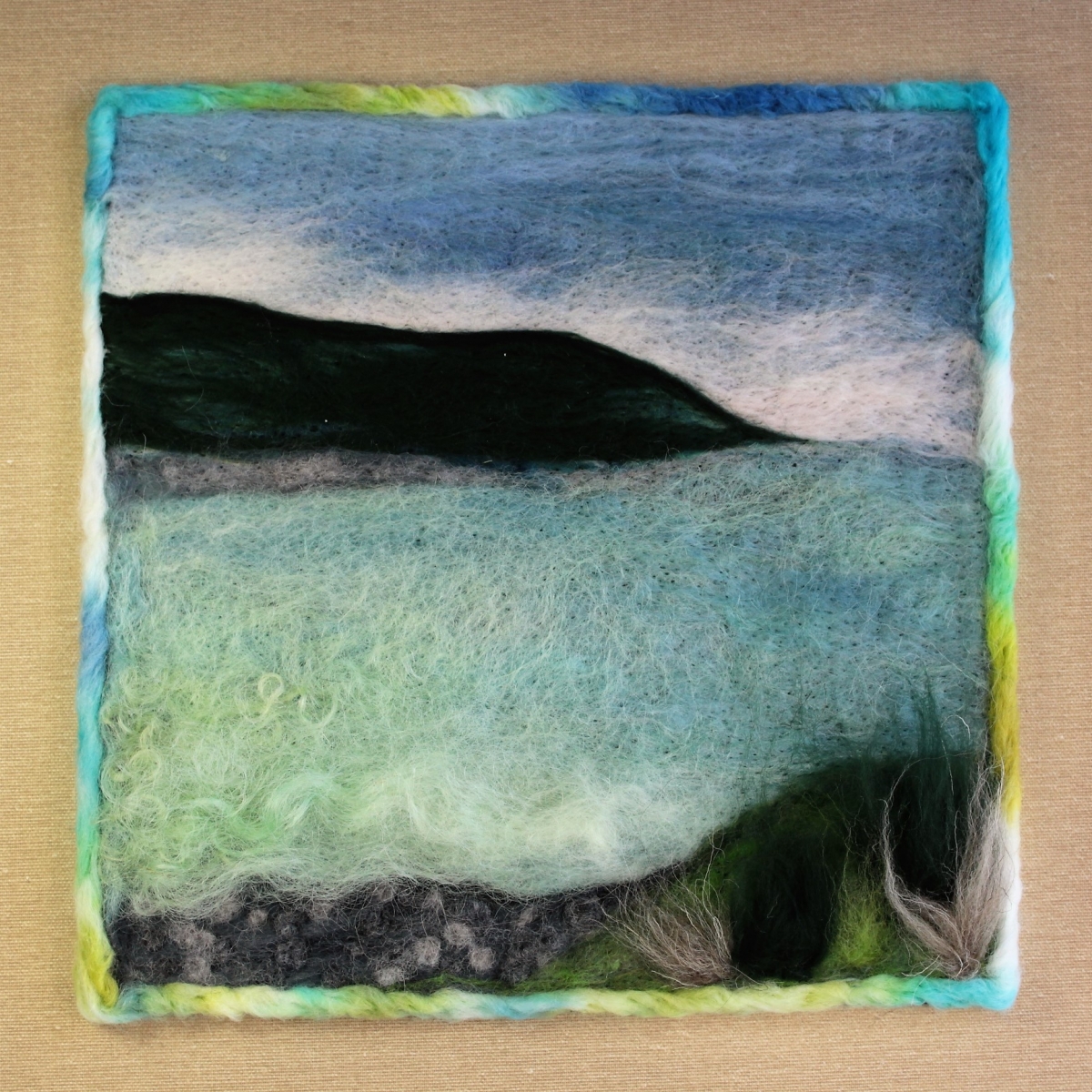 Asambláž vytvořená technikou suchého plstění ovčího rouna.